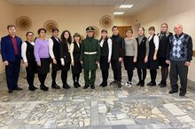 На память о встрече с солдатом были сделаны фотографии с учителями и с учащимися. -