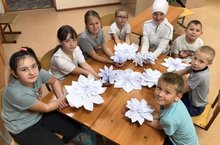 Второй день лагеря - "День творчества".Сегодня дети лепили пластилином, из цветной бумаги сделали поделку "Корзина с цветами", просмотрели советские мультфильмы и играли в различные подвижные игры.