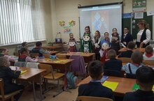 Необычно отметили день школьных библиотек вместе с начальными классами.Прочитали стихи знаменитых писателей на трёх языках посвященные году народного единства. Девочки продемонстрировали костюмы народов населяющих Татарстан. Для закрепления знаний и развития мелкой моторики сделали куколку из бумаги.