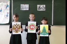С помощью компьютерной презентации учащиеся познакомились с символикой Российской Федерации и Республики Татарстан (флаг, герб). Рассмотрели структуру государства. После просмотра презентации провели беседу.