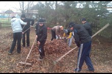 У нас в школе прошёл субботник. Учащиеся и учителя убирались во дворе школы, почистили обелиск.