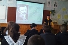 Сегодня, 12 марта 2012 года, в нашей школе учитель русского языка и литературы, Иванова Эльмира Хуснулловна, провела открытый урок по литературе, посвящённый 75 -летию В.Г.Распутина. Учащиеся и сами подготовили сообщения, рассказ учителя сопровождался слайдами. Учащиеся сделали небольшой стенд, посвящённый творчеству знаменитого писателя В.Г.Распутина.
