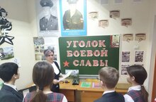 Классный руководитель 7 класса Иванова Э. Х. с учащимися провела музейный урок, где познакомила с участниками различных войн. Также ученики познакомились с историей этого дня. -