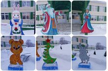 Яңа ел бәйрәмнәре алдыннан мәктәп тирәсен бизәү матур традициягә әйләнде. 2023 нче елны каршылаганда да мәктәп янында кардан ясалган әкият геройлары барлыкка килде.