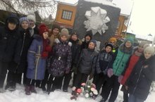 Бүген 5нче сыйныф укучылары сыйныф җитәкчеләре Сөләйманова Н.М. белән обелискка барып, кардан чистартып, чәчәкләр куеп кайттылар.