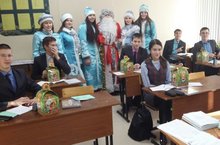 Бүген Кыш бабай белән Кар кызлары укучыларыбызга Яңа ел күчтәнәчләре өләште.