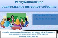 17 ноября 2017 года с 12.00 до 13.30 часов будет проведено Он-лайн трансляция родительского собрания на сайте Казанского инновационного университета им. В.Г. Тимирясова по адресу: https://ieml.ru/