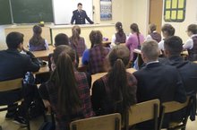 Балаларга хокукый ярдәм күрсәтү көне уңаеннан 8-11 сыйныф укучылары участок полициясе вәкаләтлесе Мубараков Ф.Р. белән очрашты.