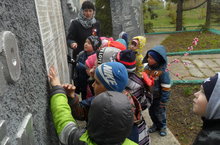 Уртанчылар һәм зурлар төркеменә йөрүче балалар һәйкәл янына барып, батыр сугышчыларны искә алдылар.
