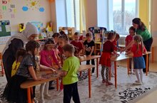 На основании годового плана МКУ "Управления образования исполнительного комитета Сабинского муниципального района РТ", в целях обеспечения преемственности и непрерывности в организации образовательной, воспитательной, учебно-методической работы между дошкольным и начальным образованием в соответствии с ФГОС учительница 4 класса посетила наши занятия.