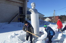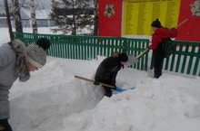 В рамках акции "Весеняя неделя добра"обучающиеся школы наводят порядок на территории обелиска в память павших односельчан во время Великой Отечественной войны, убирают снег, чинят забор.