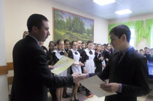 В Кильдебякской СОШ каждый понедельник проводится утренняя линейка по итогам прошлой недели. Сегодня линейка началась с информационного блока, посвященного 70-летию Победы, во второй части наградили участников и призеров предметных олимпиад, творческих и интеллектуальных конкурсов и заслушали рапорт дежурного класса, ознакомили с планом на предстоящую неделю