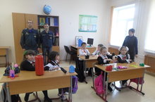 Сегодня у нас были гости. Старший инспектор Сабинского пожарного надзора Габдрахманов Р.В. и начальник Лесхозскго отдельного поста Сайфуллин Ф.Ф. Они рассказали о противопожарных действиях, провели викторину с обучающимися, показали видеоматериалы, ознакомили с принципом работы огнетушителя.