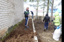 В нашей деревне есть обелиск в честь наших односельчан, погибших во время Великой Отечественной войны. Круглый год наши обучающиеся ухаживают за обелиском: убирают снег, сажают цветы и деревья, очищают от мусора. Сегодня члены организации "Молодая гвардия" посадили кусты, пропололи участок, убрали весь мусор.