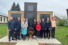 Участники митинга почтили минутой молчания всех павших на полях сражений и умерших в мирное время ветеранов. Участники митинга возложили венки и цветы к обелиску участникам ВОВ.