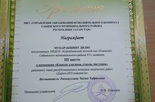 ГРАМОТА МКУ "УПРАВЛЕНИЕ ОБРАЗОВАНИЯ ИСПОЛНИТЕЛЬНОГО КОМИТЕТА САБИНСКОГО МУНИЦИПАЛЬНОГО РАЙОНА РЕСПУБЛИКИ ТАТАРСТАН"