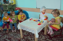 Кечкенәләр төркеме балалары табиб һөнәре белән таныштылар. "Шифаханә" сюжетлы-рольле уены аша балалар шәфкатьле, ихтирамлы һәм ярдәмчел булырга өйрәнделәр.