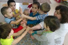 Уртанчылар төркемендә режим вакытлары халкыбызның онытыла барган уеннары белән үрелеп бара."Без,без,без идек"уены балаларга бик ошый,ул безгә сөйләм телен камилләштерергә һәм ашар алдыннан балаларны тынычландыру чарасы буларак ярдәм итә.