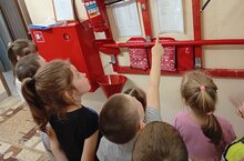 Сегодня мы совершили экскурсию к пожарному щиту, где ребята смогли увидеть оборудование, помогающее в борьбе с возгоранием. -