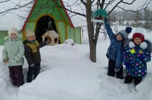 Балалар кышкы уеннарны бик яраталар. Бүген дә саф һавада рәхәтләнеп чана, чаңгы шудылар. Кечкенә көрәкчекләр белән кар көрәделәр. Балалар көн саен җимлекләргә җим салырга да онытмыйлар.