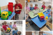 Кечкенәләр төркеме балалары белән атна темасы буенча транспорт төрләре белән таныштык. Юл йөрү кагыйдәләрен өйрәнүне дәвам итәбез. Аларның төсен, формасын, детальләрнең исемнәрен истә калдыру өстендә эшлибез."Шоферлар", "Поезд" уеннарын аеруча яратып уйнадык. "Светофор утлары" җырын тыңладык.