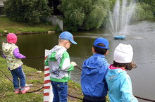 Балалар белән бистәбез буенча сәяхәт дәвам итә: бүген күлгә бардык. Лесхозыбыз уртасындагы күлдә хәтта фонтан да бар! Балалар анда салават күпере төсләрен күреп шатландылар. Шулай ук куркынычсызлык кагыйдәләрен кабатладык, чисталыкны сакларга кирәклеген искә төшердек.