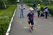 Балалар рәсем ясарга бик яраталар: кәгазьгә, пыялага, комга, суга, асфальтка... Ә бүген тырышып асфальтка рәсем ясадылар. Нинди рәсем генә юк монда: Кояш, яңгыр, салават күпере, таулар, агачлар, чәчәкләр, күбәләкләр... Ә Хазиахметов Рияз Казан Кремле һәм Сөембикә манарасын искиткеч итеп сурәткә төшерде!