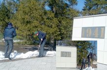 С целью воспитания бережного отношения к земле, чувства уважения к погибшим ветеранм ВОВ учащиеся 10 класса очистили территорию памятника.