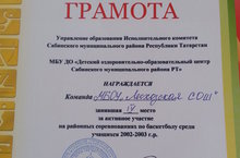 Сегодня состался финальный этап соревнований по баскетболу среди учасщихся 2002-2003 года. Здесь участвовала команда девушек нашей школы и получила грамоту за актиное участие.
