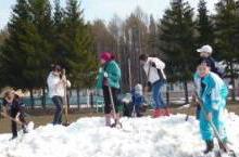 Сегодня после уроков вышли на экологический субботник по очистке территория школы и посёлка от мусора и от снега. Старшие классы разбросали снег а средние классы собирали мусор. Везде стало чисто и красиво.