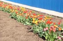 На улице весна в разгаре, а наш школьный цветник утопает в цветах тюльпана.Тюльпаны зацвели ровно и радуют наши глаза.Они посажены вдоль здания школы.Каждый год они дарят нам красоту.