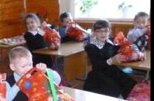 Сегодня ученики получили подарки от Деда Мороза. Ученикам начальных классов подарки раздавал сам Дед Мороз, некоторым оставил на улице под снегом, пришлось потрудиться, искать. Все были радостные и довольные от подарков .