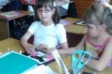 В 1-4 классах после учебных занятий ведутся внеурочные занятия. Темы внеурочных занятий очень разнообразные . В 1 классе ведётся занятие под названием «Прикосновение». Сегодня ученики рисовали лошадя не с карандашами, а с губкой .на чёрное основание. При создании образа животного его хвост, уши, лапы также следует «набирать» прикосновением губкой, т.е. печатанием.