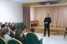 Месячник военно-патриотического воспитания в нашей школе, посвященный Дню Защитников Отечества и проводимый ежегодно, призван формировать эмоционально-волевые качества гражданина - патриота России, повышать уровень физической подготовки подростков и юношей, воспитывать стремление к сохранению и преумножению военного, исторического и культурного наследия. Ведь наша задача - не только дать детям знания, но и воспитать в них глубокое убеждение, что они, являясь гражданами своей страны, должны уметь защищать Отечество, любить Родину, стать подлинными ее патриотами. В связи с этим в школе проводился встреча с участковым уполномоченным полиции Сибагатовым А.А.