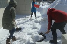 Сегодня тимуровцы очистили территорию обелиска от снега после навалившего снега 2 апреля