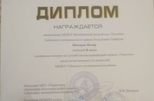 Саба районы мөхтәсибәте тарафыннан 17 март көнне Саба җәмигъ мәчетендә бәйге үткәрелде.Мәктәпкәчә яшьтәге балалар номинациясендә безнен бакчадан Ахатова Зөләйха 1 урынга лаек булды.