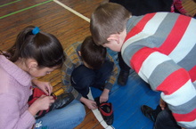 Каникулның соңгы көнендә кызыклы уеннар уйнадык."Кем тизрәк ботинканы шнурлый"уены бигрәк тә ошады.