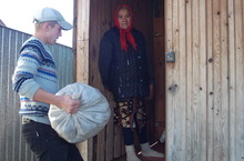Волонтерларыбыз Гыйльминур әбине бәрәңге белән тәэмин итүдә булыштылар.