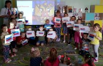 Россия дәүләте турында балаларга сөйләдек. Россия флагын ясадык. Презентация карадык. Балаларга аеруча - "7 чудес" өлешен карау кызыклы булды. Россия белән горурлану хисләре тәрбияләдек.