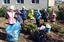 Бакчабызда өмә көне уңаеннан хезмәткәрләр, балалар белән бергәләп территорияне җыештырдык.Агачларны бәйләдек, чәчәк чүпләрен җыештырдык.