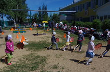 22 июнь көнне бакчабызда Сабантуй бәйрәме булды.Бәйрәмдә капчык киеп, кашыкка йомырка салып йөгерү,ат чабышы уены ,чүлмәк ватыш һәм татар халкының бик күп уеннары уйналды.Бөтен җирдә шау-шу, уен-көлке булды. Беркемдә читтә, беркем бүләксез калмады.