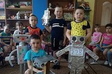 Мальчики старшей группы любят мастерить разные поделки. Недавно они участвовали в конкурсе "Юный айтишник" со своими компьютерами, а сейчас смастерили роботов. Среди этих роботов есть и знаменитый Валли - уборщик планеты Земля.