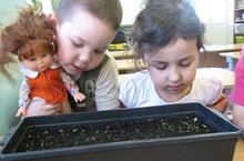 Воспитанники 2 младшей группы рассматривают цветочную рассаду 23.03.2016