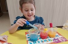 Развиваем лексический запас, навыки связной речи, умения описывать и сравнивать. Формируем представления о цвете и результате, полученные при смешивании в кружке второй младшей группы "Будем говорить правильно". "Что получится если смешать жёлтый и синий цвет?"