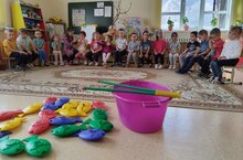 В течение дня дети беседовали о жизни рыб и их разнообразии, рассматривали иллюстрации с изображением различных рыб, играли в подвижные игры и раскрашивали раскраски с изображениями рыб.Также в рамках дня был проведен просмотр презентации «Обитатели морских глубин», а на прогулке дети стряпали пирог с рыбой и украшали его формочками.
