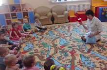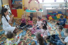 Иң кечкенәләр төркемендә кунакка куян килде. Балалар куян алып килгән күчтәнәчләр белән таныштылар. Тәрбияче апалары Низамиева Ф.С. сөйләгән һәр сүзне игътибар белән тыңладылар, сорауларга җавап бирергә тырыштылар. Балалар үзләре дә куян булып, биеп алдылар. Тәрбияче күрсәткән предметларның исемнәрен кабатладылар, төсләр әйтергә өйрәнделәр.