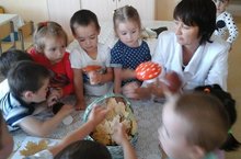 И в честь праздник тыквы, сегодня в нашем детском саду, собрались все малыши. Все хвалили тыкву, рассказывали стихи и пели песни.