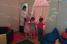 Дошкольный возраст является сенситивным для развития восприятия, на его основе развиваются память, внимание, мышление. В основе формирования и развития высших психических функций лежит сложный процесс интеграции внешнего мира во внутренний, поэтому очень важно при различных психологических нарушениях особое внимание уделять развитию восприятия. Коррекционная и развивающая работа в Сенсорной комнате направлена на поэтапное включение всех сенсорных потоков через стимуляцию различных органов чувств. Сенсорная комната-это организованная особым образом окружающая среда, состоящая из множества различного рода стимуляторов, которые воздействуют на органы зрения, слуха, осязания и вестибулярные рецепторы. Перед тем, как приводить детей в сенсорную комнату, педагог должен придумать как же ее можно обыграть. Наш психолог Гайфуллина А.Ш. провела занятие с воспитанниками старшей группы на тему: “Волшебное путешествие в кабинете психолога”. Цель занятия: развитие восприятия, творческого мышления, мелкой и общей моторики. Ведущей деятельностью в дошкольном возрасте является игра, занятие проводилось в игровой форме.