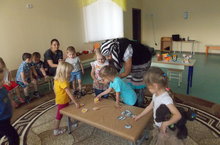 На урок английского языка к детям второй младшей группы пришла Баба Яга . Дети были очень удивлены её появлением. Баба Яга попросила у ребяток помощи. Они научили её здороваться, считать до 4 на английском языке и определять погоду на улице.