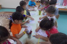 На уроке русского языка тема «Дары осени» дети средней, старшей и подготовительной групп расширили знания о признаках осени, показали уникальность и значимость осенних даров для человека. Доделали дерево, яблоко, грушу, гусеницу с помощью прищепок.